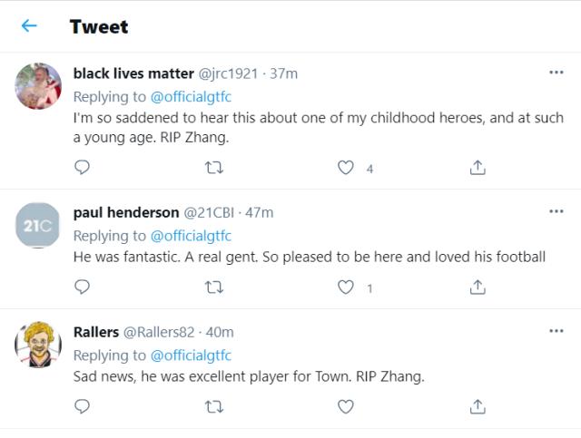 一个由格林斯比球迷打理的资讯账号,用自己的语言表达了对张恩华的敬意:“成为一个被崇拜的英雄或传奇的形象,对于绝大多数球员而言都是很困难的。而他在仅仅出场17次之后就做到了。安息吧,张,我们的心与你的家人朋友同在。”另一个资讯号写道:“这样一名球员,只在这里效力这么短的时间,却仍给这里的原生球迷留下了如此深刻的印象。愿张安息。”“黑子”在格林斯比球迷心中的分量,由此可见。